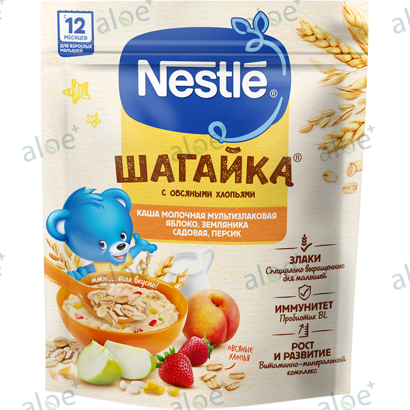 Nestle Şaqayka sıyıq 12 aydan etibarən, taxıl Əzməsi, Alma, Çiyələk, Şaftalı 190 q